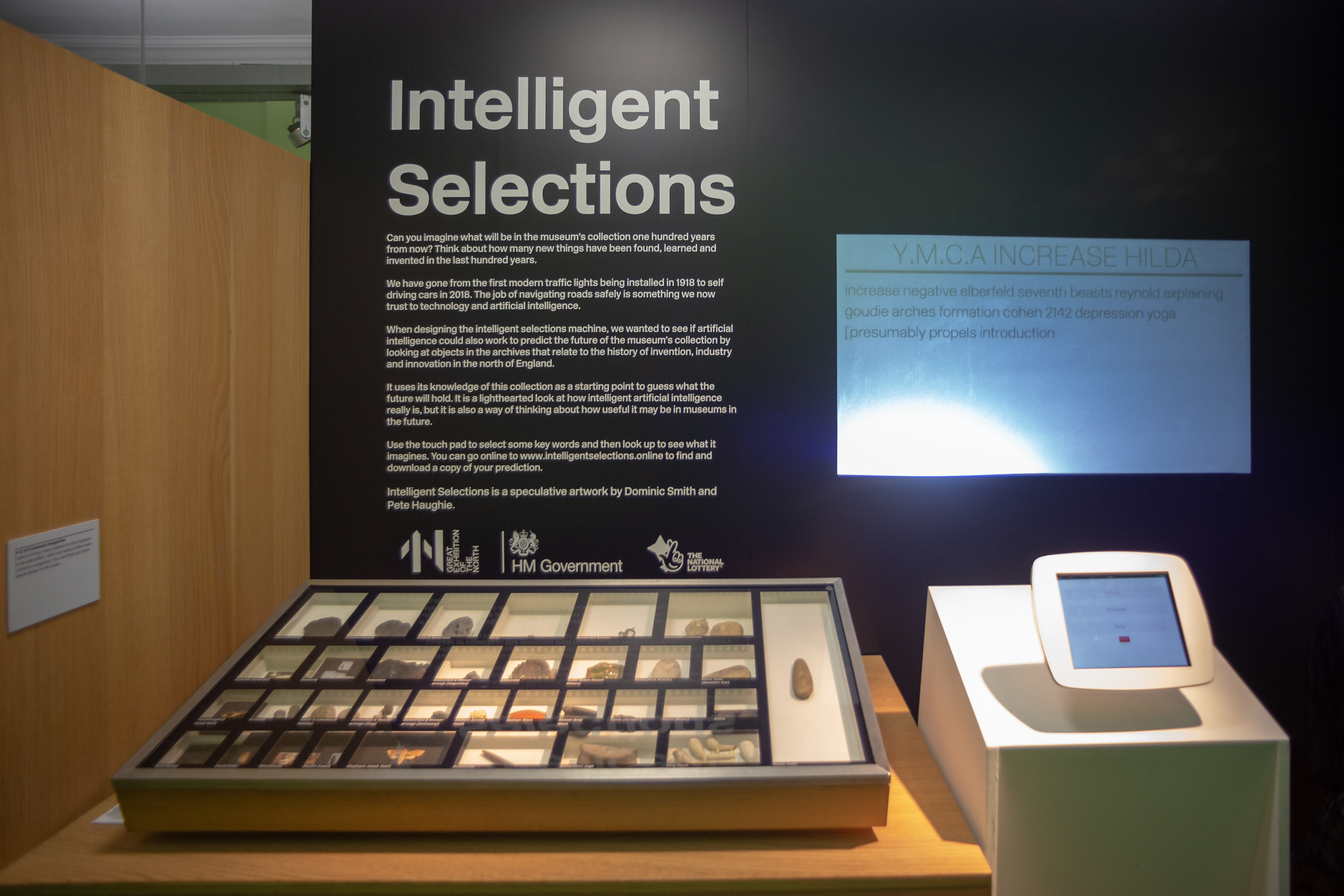 When designing the intelligent selections machine, we wanted to see if artificial intelligence could also work to predict the future of the museum’s collection by looking at objects in the archives that relate to the history of invention, industry, and innovation in the north of England. It uses its knowledge of this collection as a starting point to guess what the future will hold. It is a light-hearted look at how intelligent artificial intelligence really is, but it is also a way of thinking about how useful it may be in museums in the future.